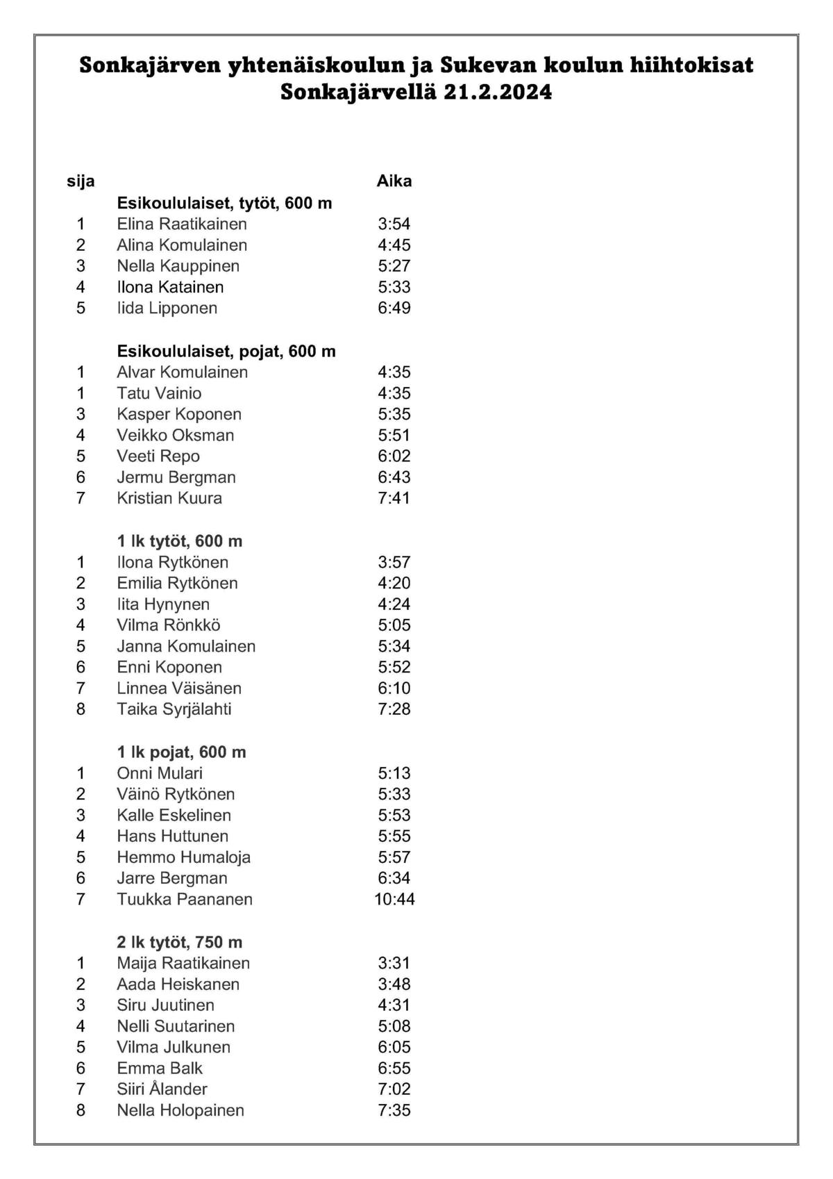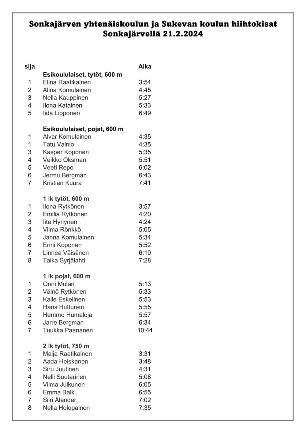 Sonkajärven yhtenäiskoulun ja Sukevan koulun hiihtokilpailut