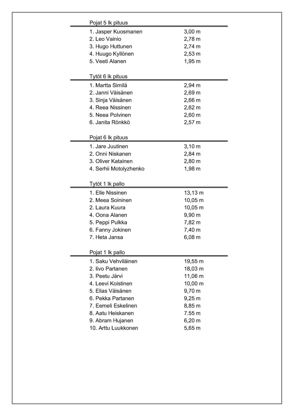 Sonkajärven ja Sukevan koululaisten yleisurheilukisat 24.9.2024